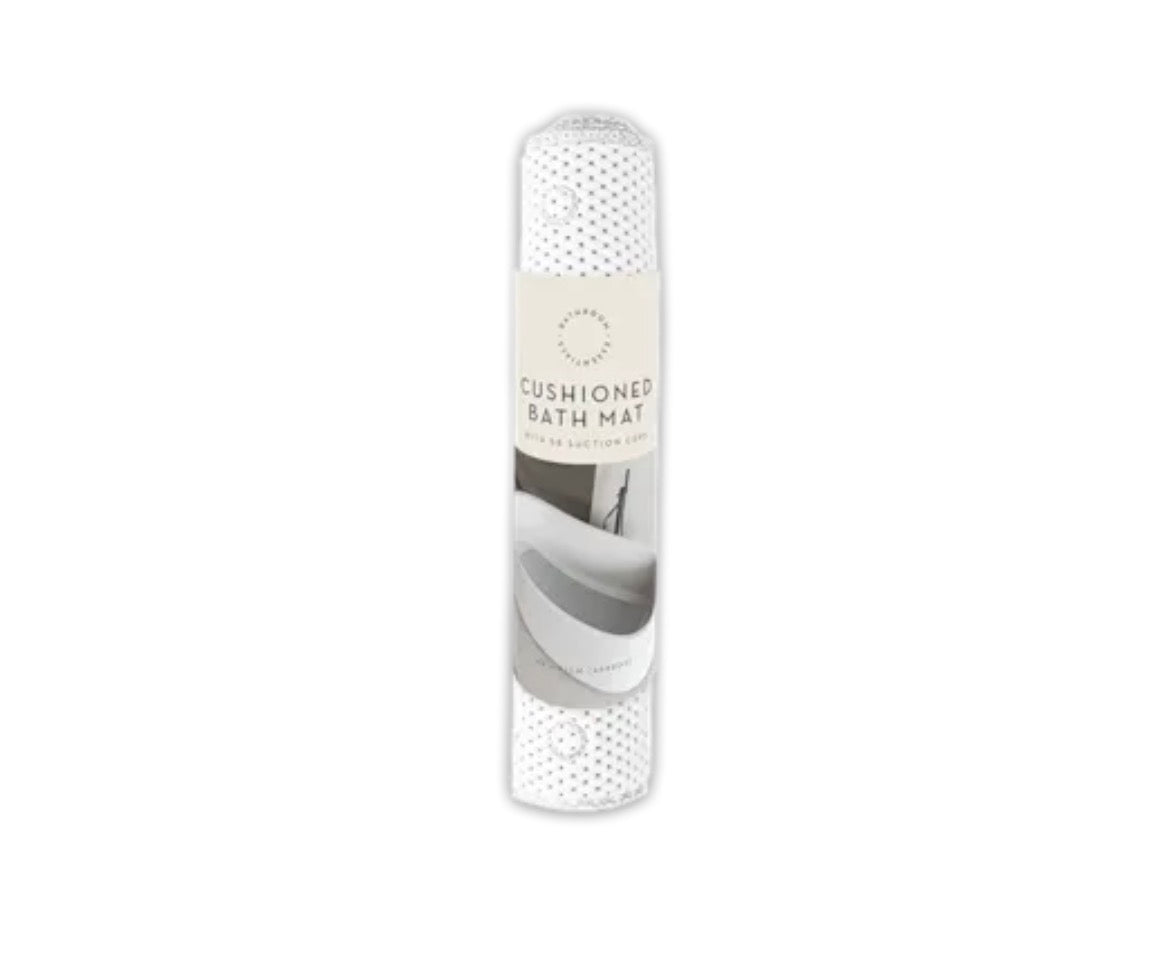 This cushioned bath mat is an everyday essential. Measuring (L) 90.5cm x (w) 43.5cm the cushioned bath mat has an ultra powerful grip with x 58 suctions cups to secure the mat in place.